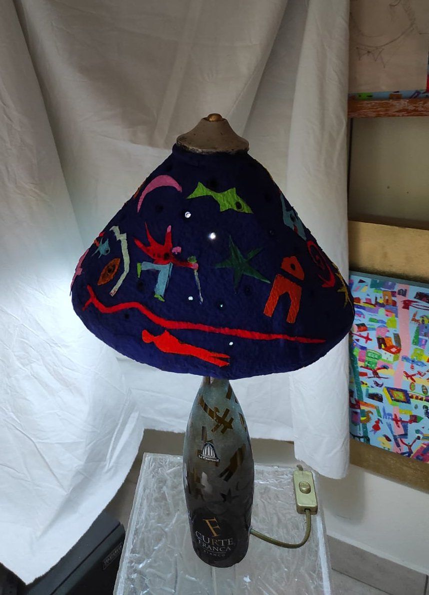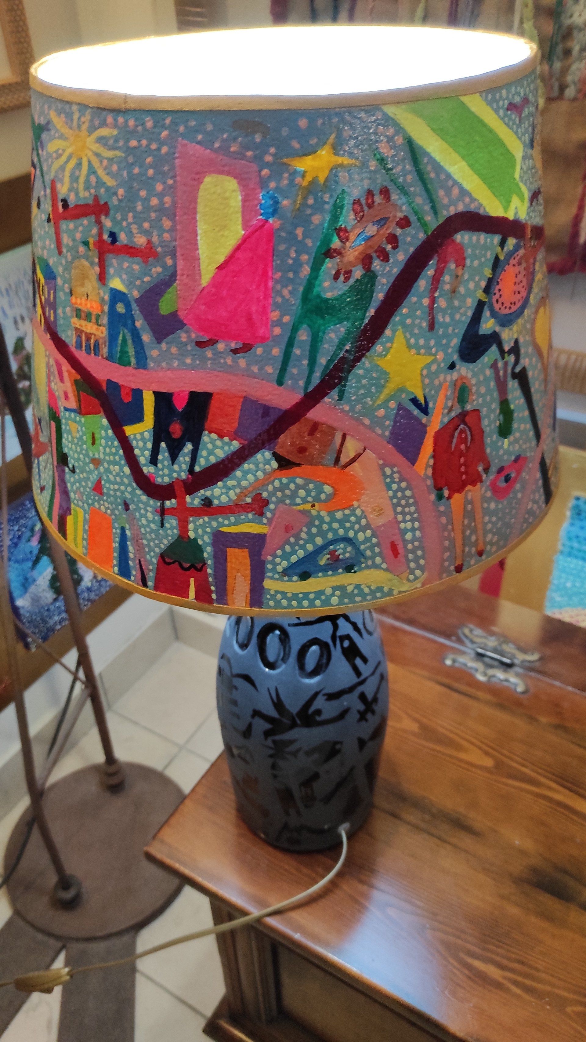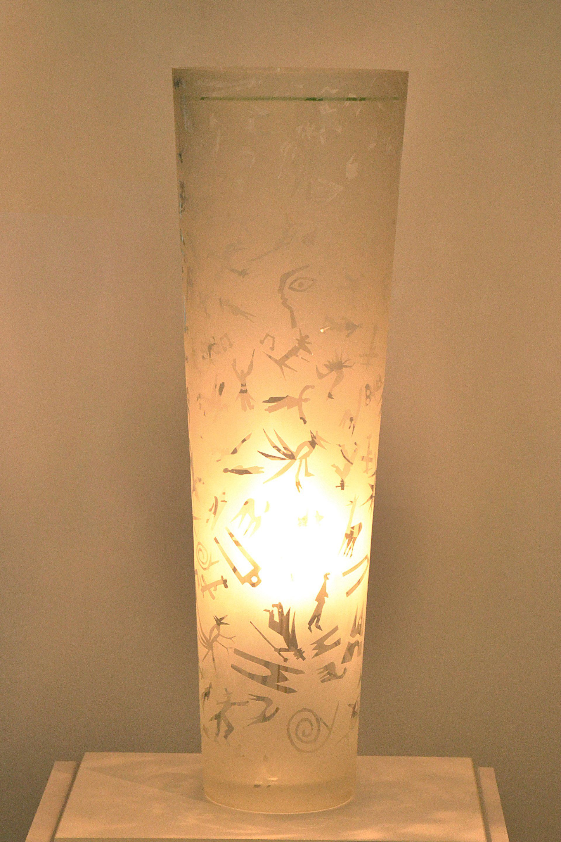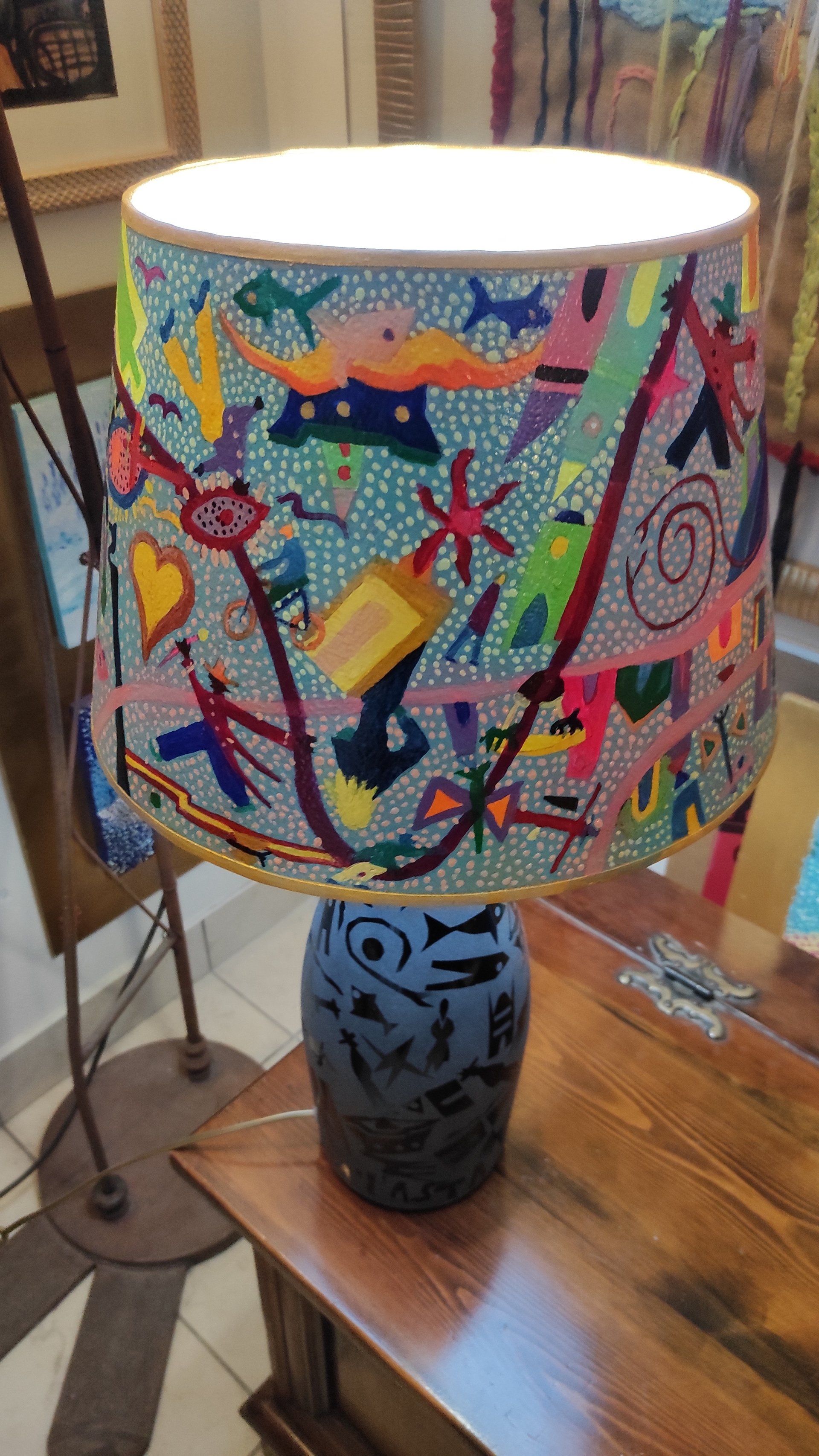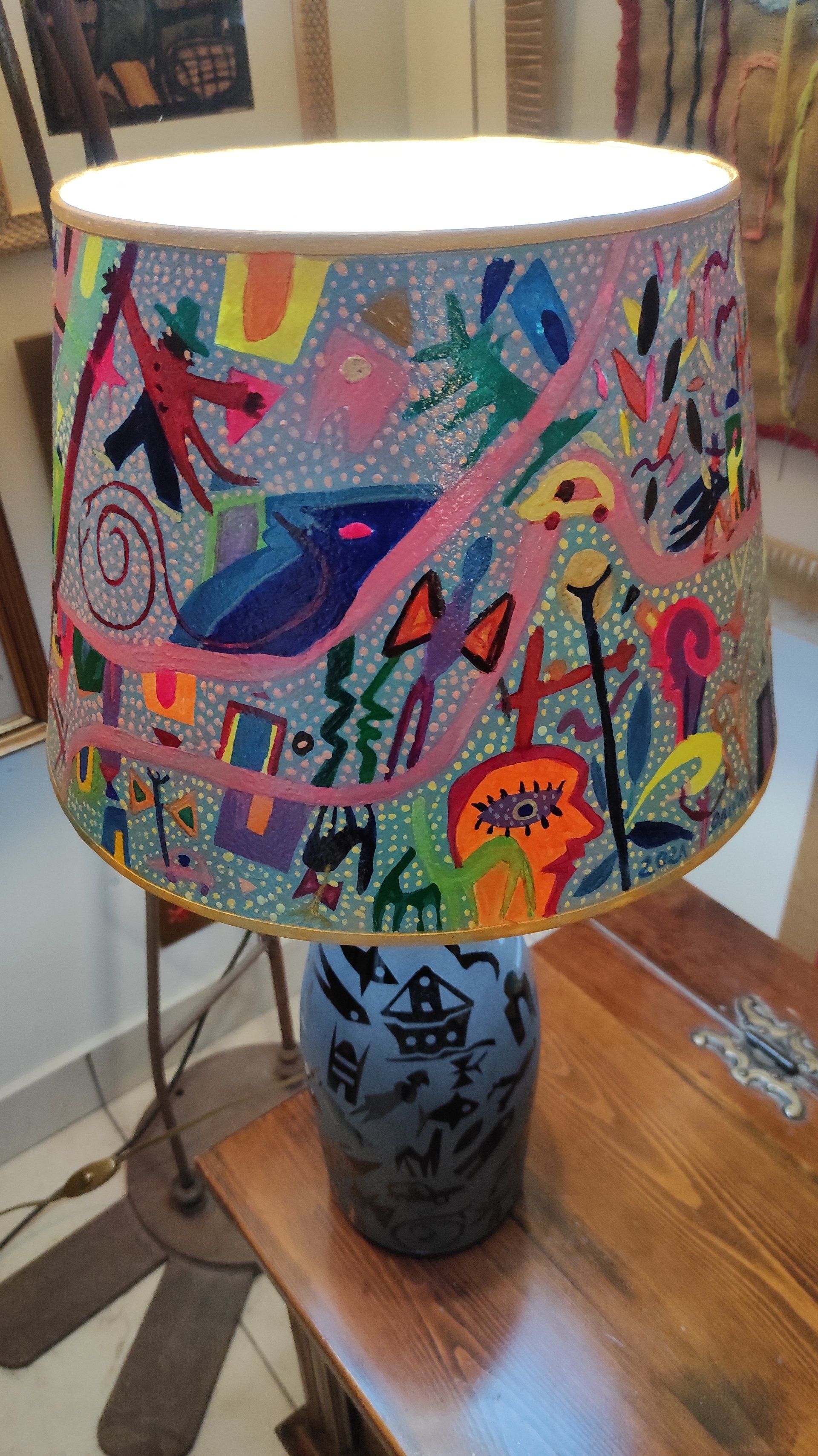 Dall’Asta Oliviero oltre alla pittura, si dedica alla creazione di lampade in vetro xerigrafato,
