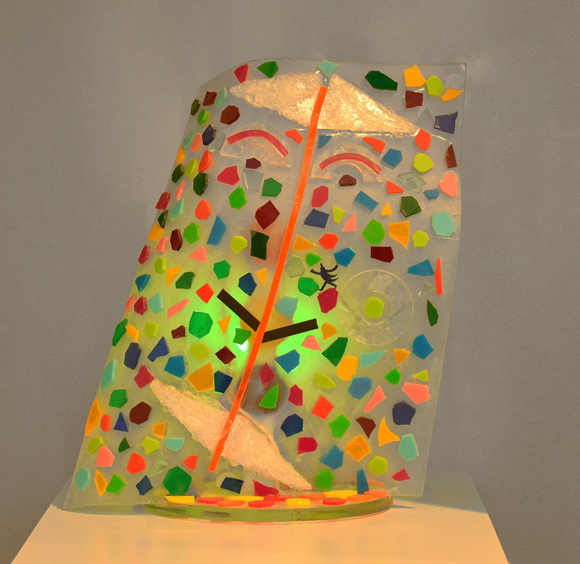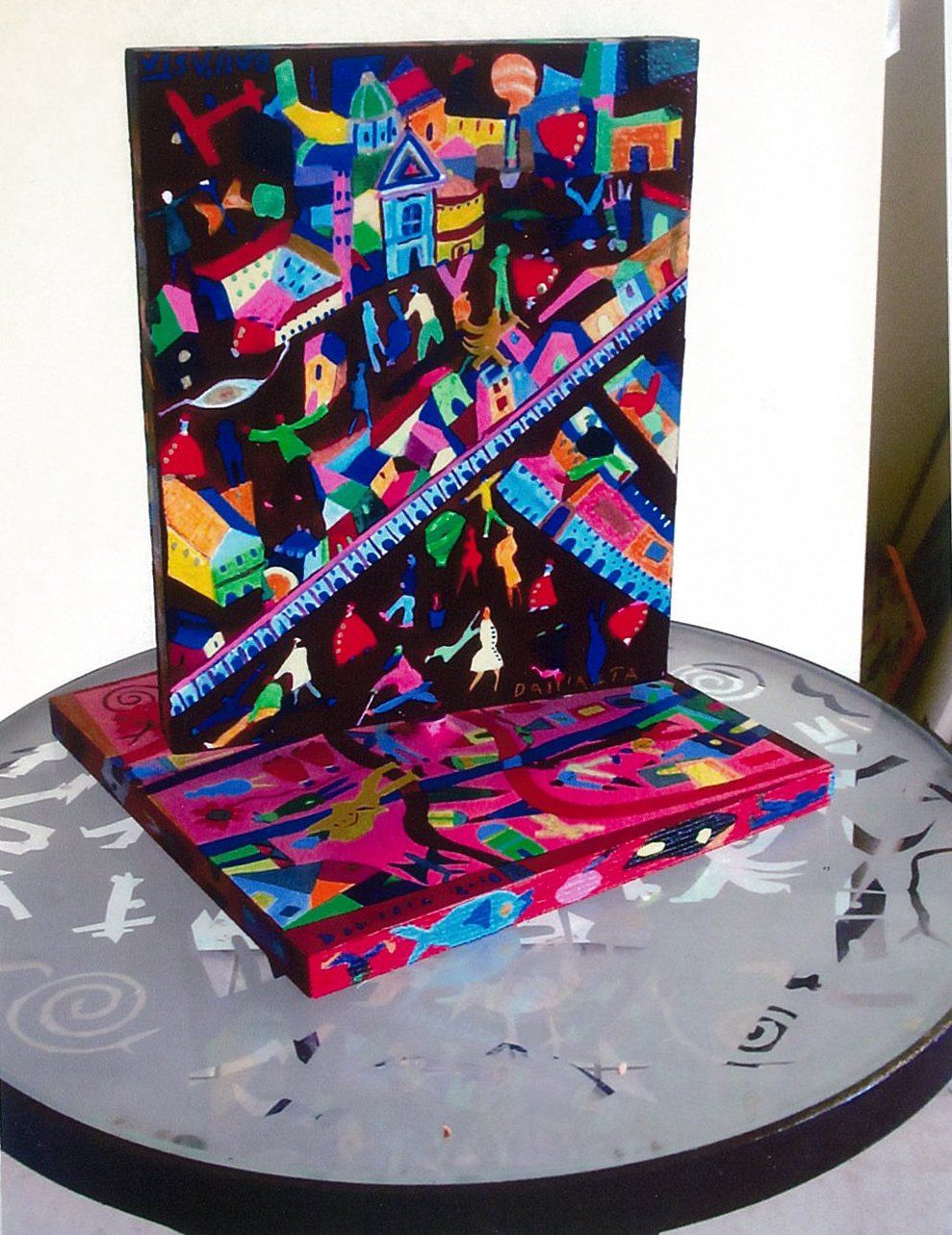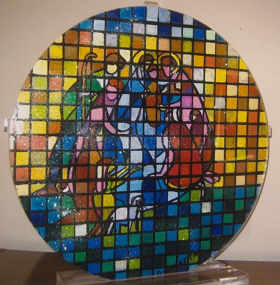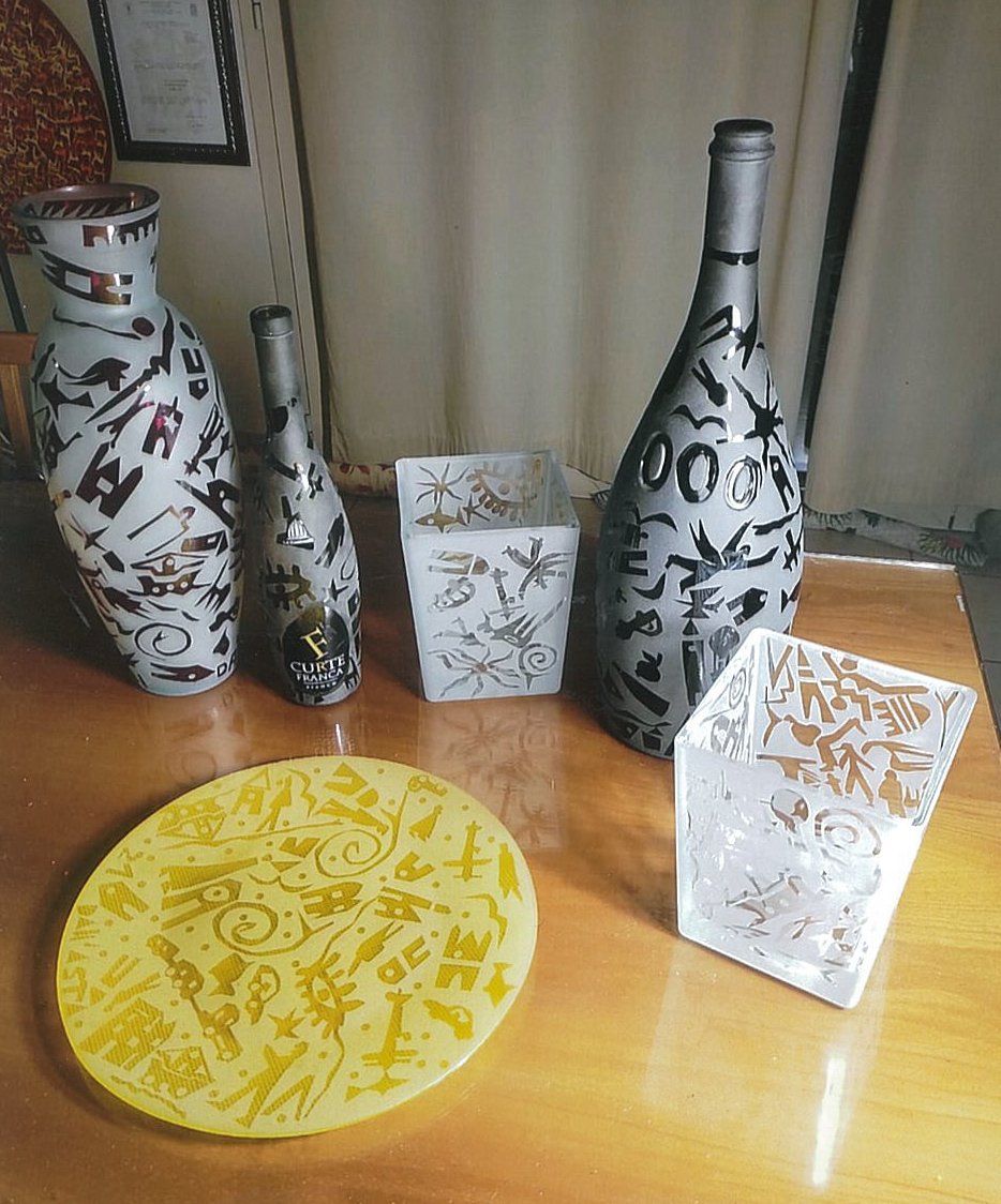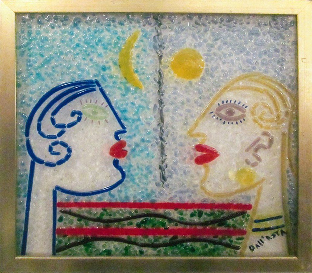 Dall’Asta Oliviero oltre alla pittura, si dedica alla creazione di lampade in vetro xerigrafato,