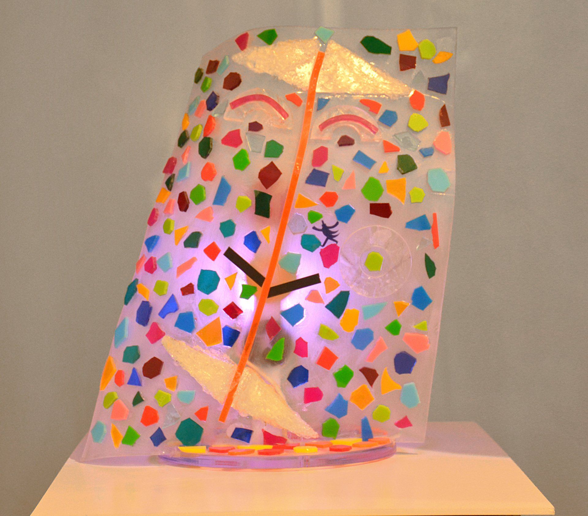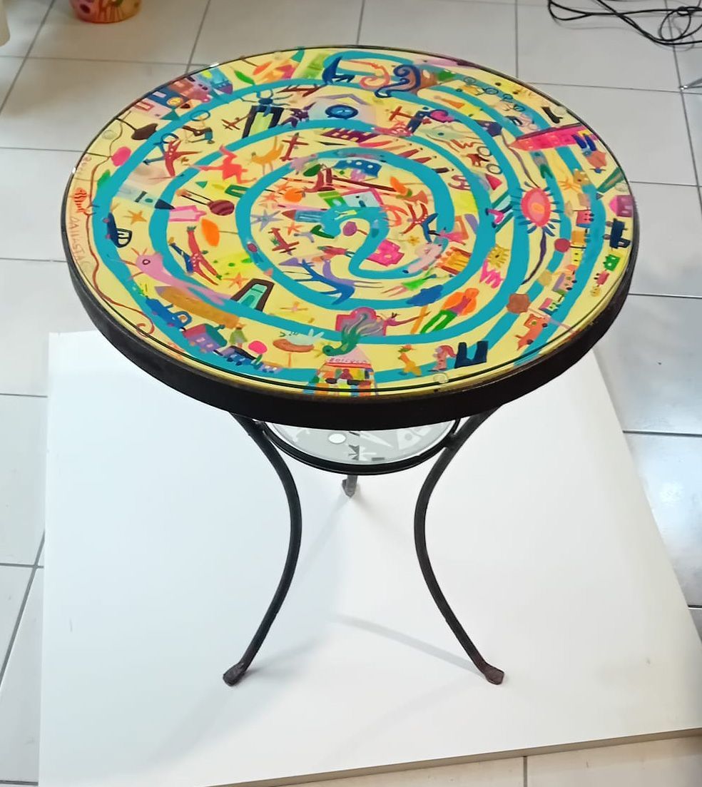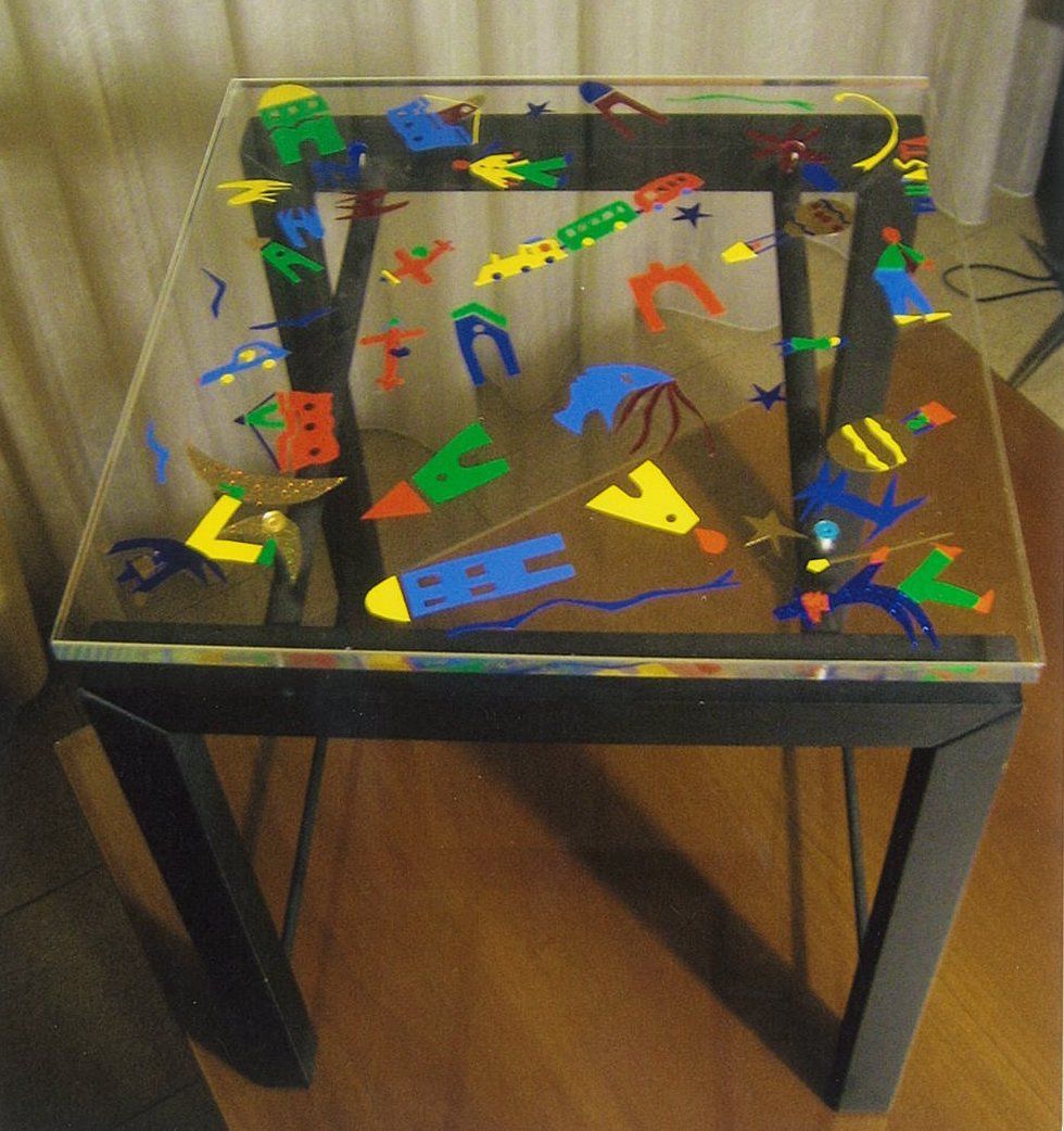 sculture particolari personalizzate in creta e plexiglas, tavolini.