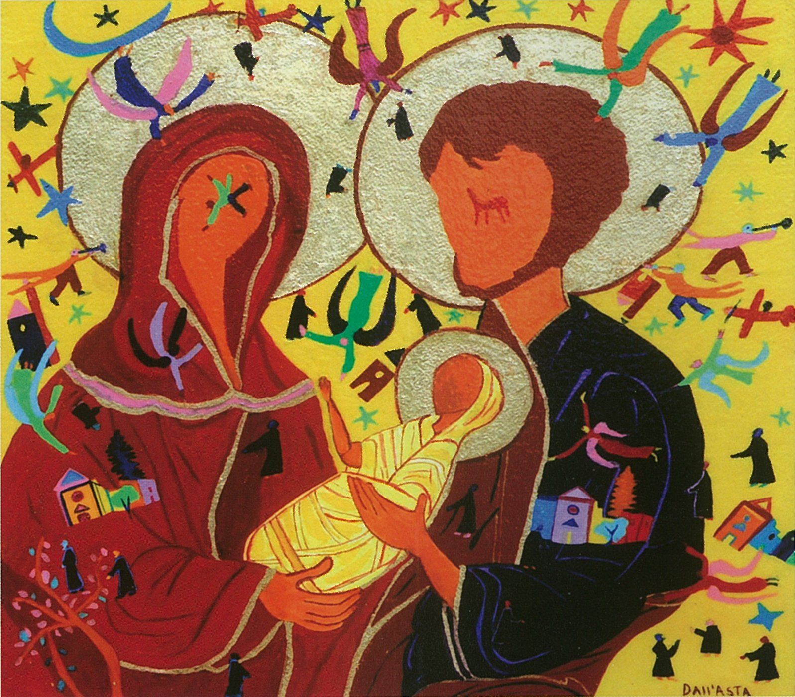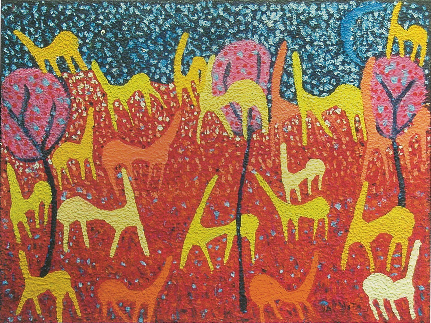 In quest'ottica sembra muoversi Oliviero Dall'Asta quando colloca le sue giraffe primitivistiche in una collodiana atmosfera policroma, o quando proietta in cieli amaranto (con effetti pulviscolari) gli alberi dalla chioma oltremare e le agili case sagomate a torre. Trascorre in queste immagini un'indefinibile poesia della semplicità capace di coinvolgere una diversificata fruizione senza età, tutta protesa a godere di quei fiabeschi episodi che però ancora con la realtà mantengono un esile filo di memoria, un fragile frammento di interiorizzata verità.